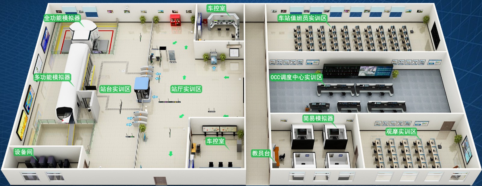 城軌全自動(dòng)運(yùn)行綜合仿真培訓(xùn)系統(tǒng)旨在解決當(dāng)前城軌領(lǐng)域全自動(dòng)運(yùn)行中各專業(yè)單工種實(shí)作技能培訓(xùn)及多工種協(xié)同演練技能培訓(xùn)缺乏安全、高效、適用工具的問題。系統(tǒng)具有完全自主知識(shí)產(chǎn)權(quán),基于全自動(dòng)運(yùn)行系統(tǒng) GoA3、GoA4級(jí)運(yùn)行原理仿真,能夠滿足全自動(dòng)運(yùn)行場(chǎng)景下各崗位人員的培訓(xùn)考核需求。城軌全自動(dòng)無人駕駛仿真培訓(xùn)系統(tǒng)主要由調(diào)度作業(yè)仿真培訓(xùn)系統(tǒng)(含車輛調(diào)、乘客調(diào)、行調(diào)、電調(diào)、環(huán)調(diào)仿真培訓(xùn)終端)、車站作業(yè)仿真培訓(xùn)系統(tǒng)(含站臺(tái)站廳實(shí)訓(xùn)系統(tǒng))、列車駕駛仿真培訓(xùn)系統(tǒng)等核心系統(tǒng)組成。