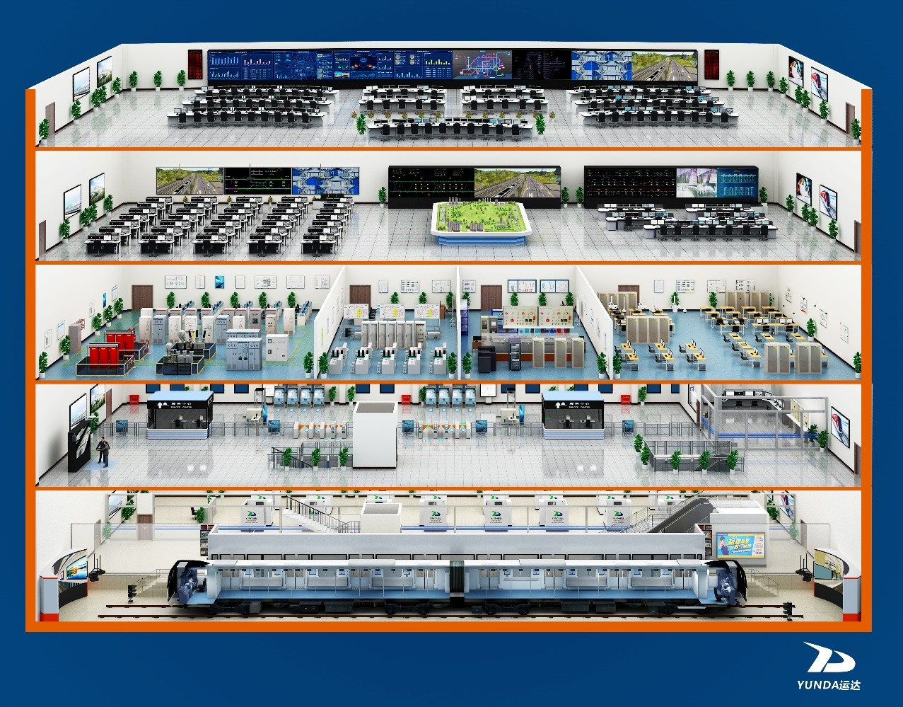城軌綜合運營仿真培訓系統(tǒng)可用于對城市軌道交通各專業(yè)各崗位人員的崗位技能進行培訓與考核。系統(tǒng)基于真實原理仿真,最大程度還原運營現(xiàn)場實際情況,可滿足各專業(yè)各崗位的一次標準作業(yè)、故障非正常處理、多工種應急演練、設備檢修維護等方面考培需求。針對列車運行場景,采用榮獲四川省科技進步一等獎的"城軌列車虛擬運行環(huán)境關鍵技術",逼真還原"人-車-線-網"復雜運行環(huán)境,并基干場景建模、虛擬聲場重建、可視化關聯(lián)分析等前沿技術打造新一代多工種聯(lián)合演練綜合平臺,為裝備設計、方案驗證以及人員培訓提供了數(shù)字化、自動化、智能化的綜合平臺,提升了相關工作開展的質量和效率。