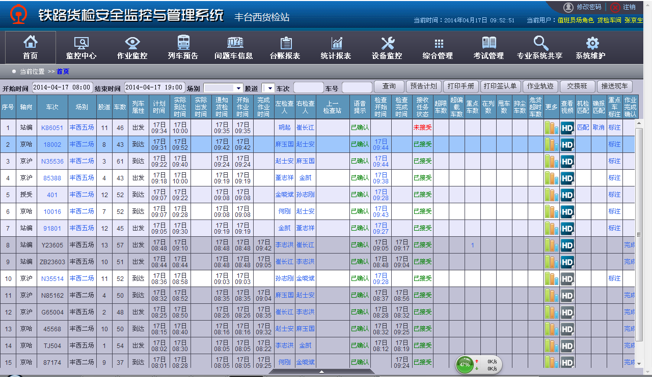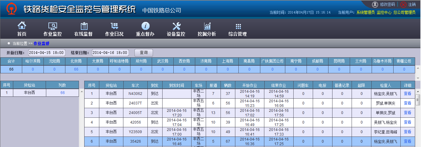 有貨檢作業的車站,一般成立了貨檢車間。該貨檢車間工作及管理人員使用的《鐵路貨檢安全監控與管理系統》是全國鐵路統一開發和使用的軟件系統。成都貨安計量技術中心有限公司是該軟件系統的重要開發參與者和運維者。目前該系統已經在全路投入使用,并實現了三級聯網,搭接在該系統中實現數據交換的有:安全門監控系統、軌道衡和超偏載系統、貨檢員現場作業看車時手持機系統等。